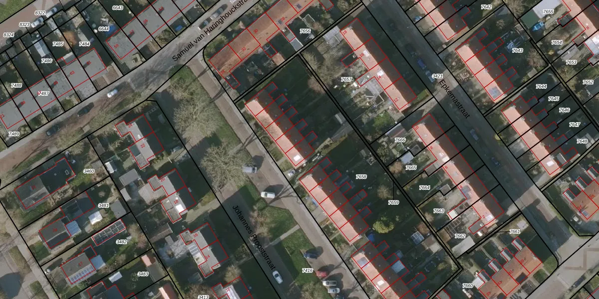 Het perceel waarop Johannes Prooststraat 21 staat heeft een oppervlakte van 2594 m². Dit is een zeer groot perceel. De perceeloppervlakte wordt geregistreerd door het Kadaster. Gedetailleerde informatie over de maten van dit perceel kunt u vinden in het rapport Kadastrale kaart met maatvoering van Johannes Prooststraat 21.