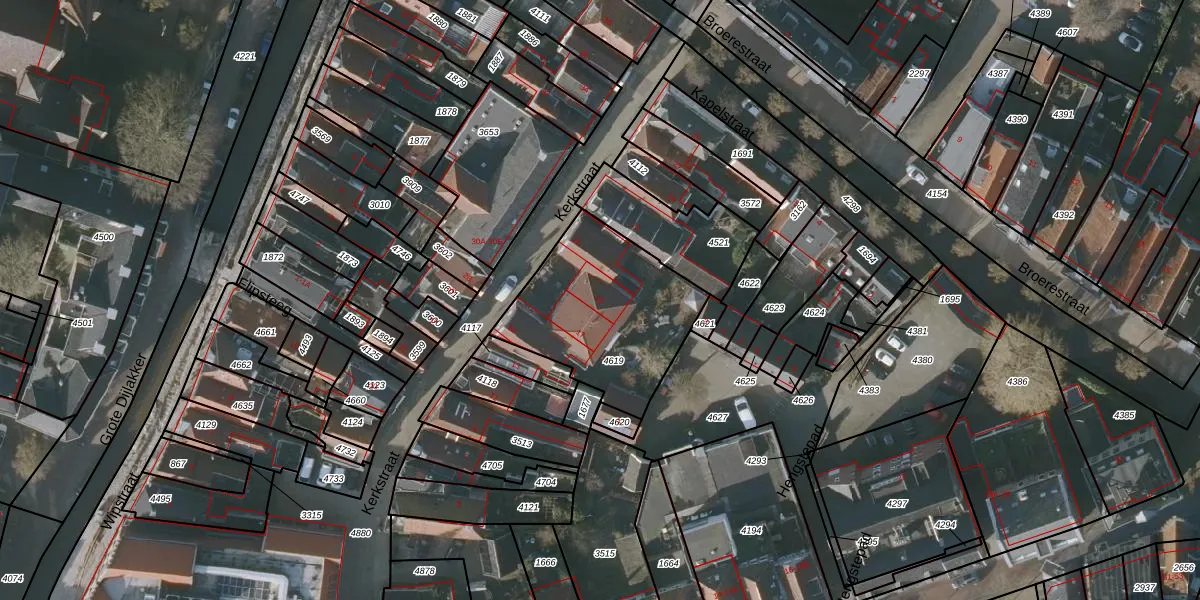 Het perceel waarop Kerkstraat 19 staat heeft een oppervlakte van 660 m². Dit is een groot perceel. De perceeloppervlakte wordt geregistreerd door het Kadaster. Gedetailleerde informatie over de maten van dit perceel kunt u vinden in het rapport Kadastrale kaart met maatvoering van Kerkstraat 19.