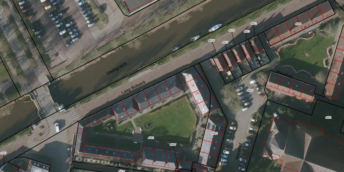 Het perceel waarop het adres ligt is BWD01-A-4681. De afkorting 'BWD01' staat voor kadastrale gemeente Bolsward. De gemiddelde perceeloppervlakte in de kadastrale gemeente Bolsward is 1701,33 m². Dit perceel is met zijn 3301 m² dus groter dan gemiddeld. De grootste perceeloppervlakte in de kadastrale gemeente is 14,5 ha. De kleinste oppervlakte bedraagt 0 m². Op het perceel zijn 19 adressen aanwezig. De huidige grenzen van het perceel zijn digitaal in de Basisregistratie Kadaster (BRK) geregistreerd op 04-03-2011.