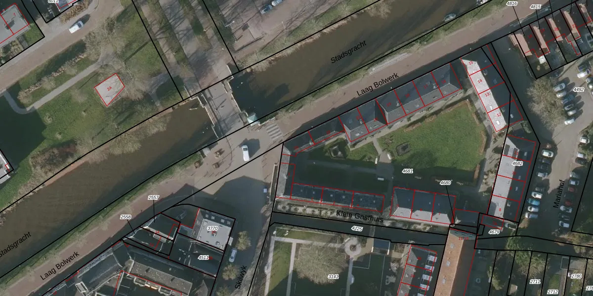 Het perceel waarop Klein Gasthuis 23 staat heeft een oppervlakte van 3301 m². Dit is een zeer groot perceel. De perceeloppervlakte wordt geregistreerd door het Kadaster. Gedetailleerde informatie over de maten van dit perceel kunt u vinden in het rapport Kadastrale kaart met maatvoering van Klein Gasthuis 23.