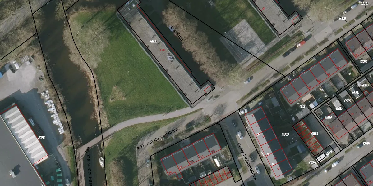 Het perceel waarop het adres ligt is BWD01-B-6195. De afkorting 'BWD01' staat voor kadastrale gemeente Bolsward. Het perceel is 715 m² groot. Dat is kleiner dan de gemiddelde perceeloppervlakte in Bolsward, dat op 1705,94 m² ligt. De grootste perceeloppervlakte in de kadastrale gemeente is 14,5 ha. De kleinste oppervlakte bedraagt 0 m². Op het perceel zijn 28 adressen aanwezig. De huidige grenzen van het perceel zijn digitaal in de Basisregistratie Kadaster (BRK) geregistreerd op 15-01-1998.