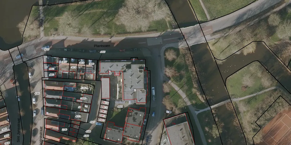 Het perceel waarop het adres ligt is BWD01-A-4464. De afkorting 'BWD01' staat voor kadastrale gemeente Bolsward. De oppervlakte van het perceel is 1850 m². Dat is groter dan gemiddeld in Bolsward, waar de gemiddelde perceeloppervlakte op 1706,56 m² ligt. Het grootste perceel in de kadastrale gemeente is 14,5 ha. Het kleinste perceel heeft een oppervlakte van 0 m². Er zijn 56 adressen aanwezig op het perceel. In de Basisregistratie Kadaster (BRK) werden de grenzen van het perceel geregistreerd op 25-03-2010.