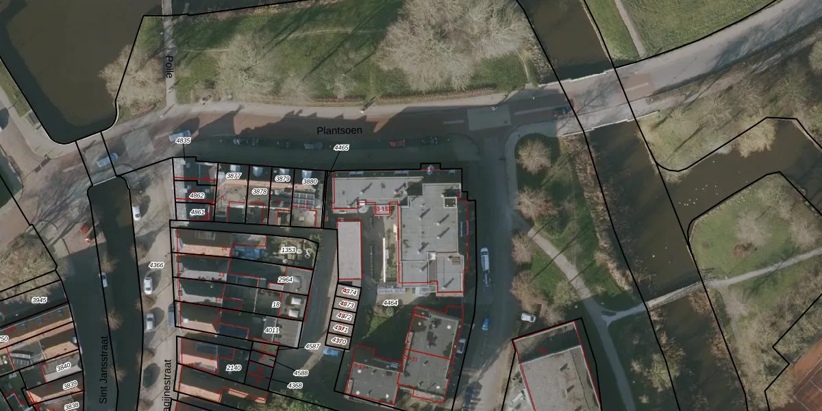 Het perceel waarop het adres ligt is BWD01-A-4464. De afkorting 'BWD01' staat voor kadastrale gemeente Bolsward. De oppervlakte van het perceel is 1850 m². Dat is groter dan gemiddeld in Bolsward, waar de gemiddelde perceeloppervlakte op 1706,56 m² ligt. Het grootste perceel in de kadastrale gemeente is 14,5 ha. Het kleinste perceel heeft een oppervlakte van 0 m². Op het perceel liggen in totaal 56 adressen. De huidige grenzen van het perceel zijn digitaal in de Basisregistratie Kadaster (BRK) geregistreerd op 25-03-2010.