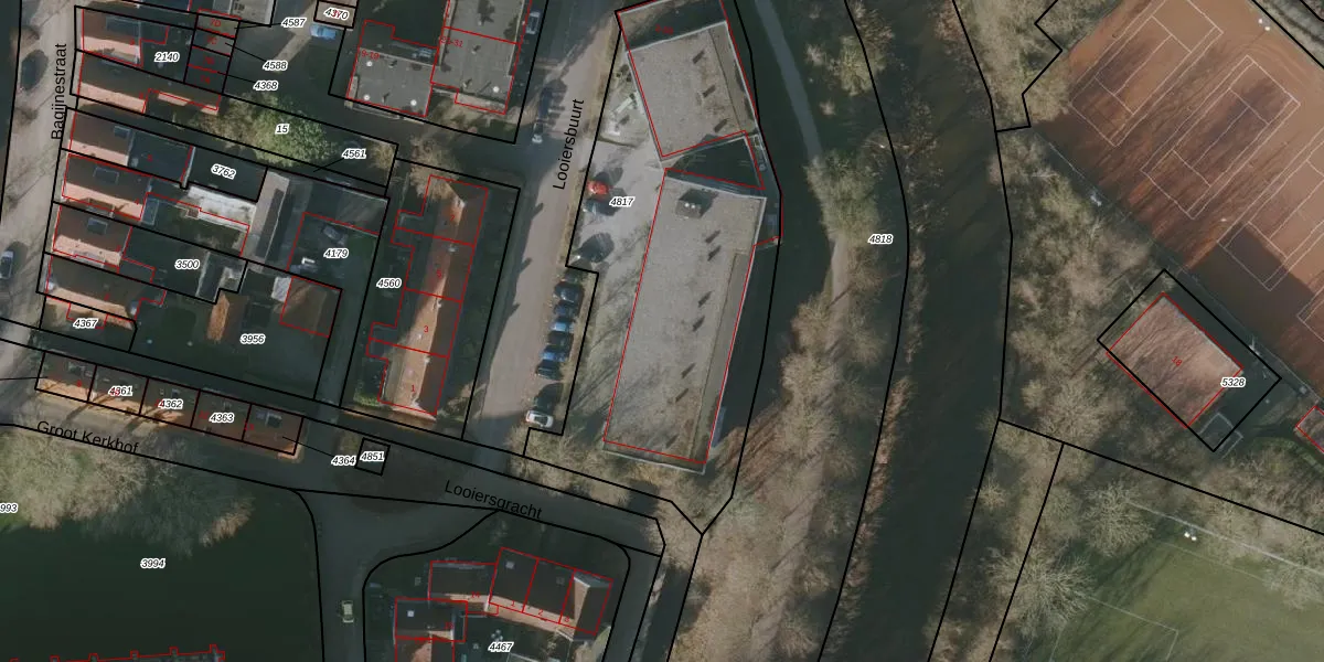 Het perceel waarop Looiersbuurt 44 staat heeft een oppervlakte van 2010 m². Dit is een zeer groot perceel. De perceeloppervlakte wordt geregistreerd door het Kadaster. Gedetailleerde informatie over de maten van dit perceel kunt u vinden in het rapport Kadastrale kaart met maatvoering van Looiersbuurt 44.