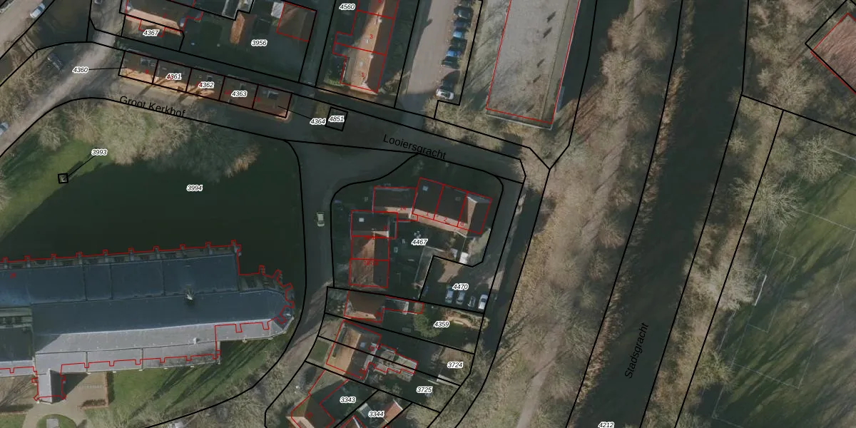 Looiersgracht 1 is gelegen op kadastraal perceel BWD01A4467. Deze kadastrale aanduiding is uniek en wordt gebruikt door het Kadaster om eigendomsrechten en andere zakelijke rechten vast te leggen. Het perceel maakt onderdeel uit van de kadastrale gemeente Bolsward.