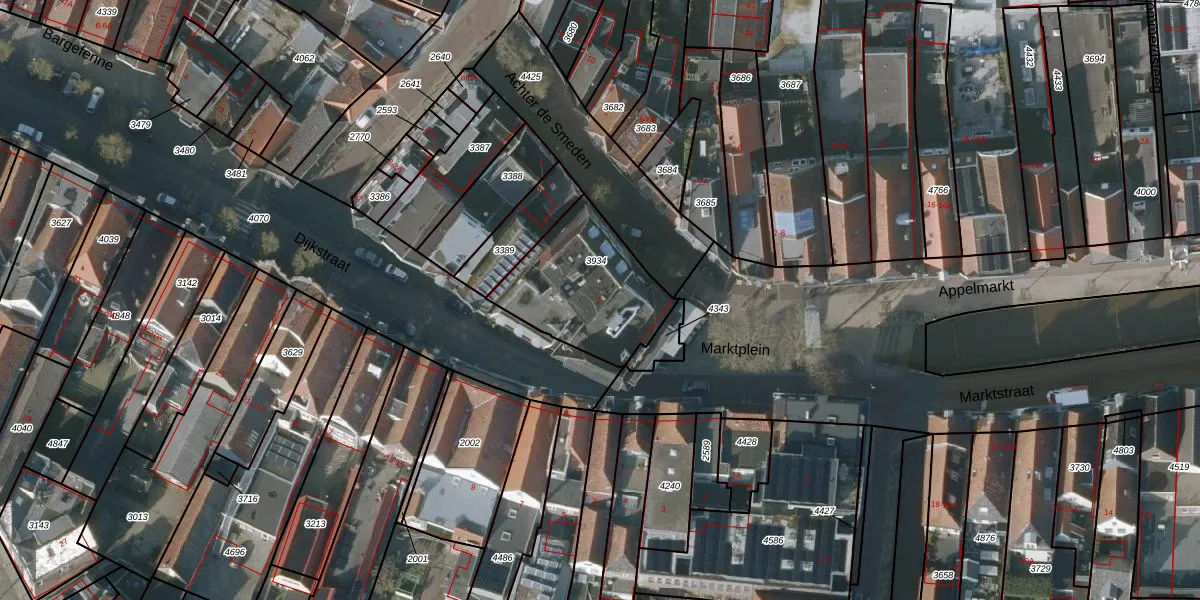 Het perceel waarop Marktplein 5 staat heeft een oppervlakte van 429 m². Dit is een groot perceel. De perceeloppervlakte wordt geregistreerd door het Kadaster. Gedetailleerde informatie over de maten van dit perceel kunt u vinden in het rapport Kadastrale kaart met maatvoering van Marktplein 5.