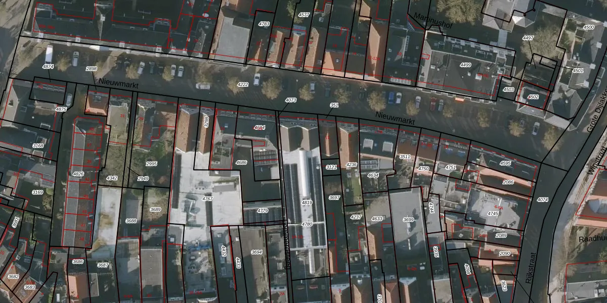 Het perceel waarop Nieuwmarkt 15-A staat heeft een oppervlakte van 711 m². Dit is een groot perceel. De perceeloppervlakte wordt geregistreerd door het Kadaster. Gedetailleerde informatie over de maten van dit perceel kunt u vinden in het rapport Kadastrale kaart met maatvoering van Nieuwmarkt 15-A.