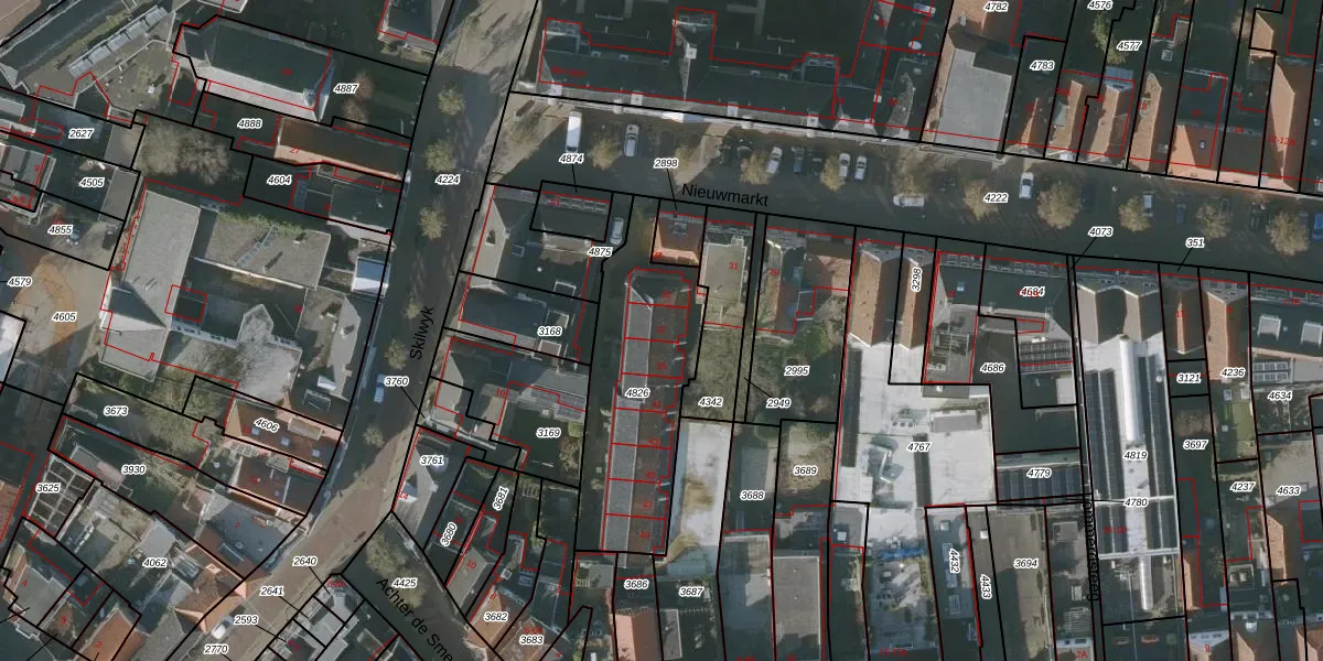 Het perceel waarop Nieuwmarkt 37 staat heeft een oppervlakte van 675 m². Dit is een groot perceel. De perceeloppervlakte wordt geregistreerd door het Kadaster. Gedetailleerde informatie over de maten van dit perceel kunt u vinden in het rapport Kadastrale kaart met maatvoering van Nieuwmarkt 37.