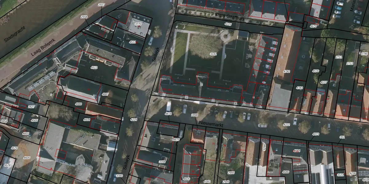 Het perceel waarop Nieuwmarkt 38-C staat heeft een oppervlakte van 2495 m². Dit is een zeer groot perceel. De perceeloppervlakte wordt geregistreerd door het Kadaster. Gedetailleerde informatie over de maten van dit perceel kunt u vinden in het rapport Kadastrale kaart met maatvoering van Nieuwmarkt 38-C.