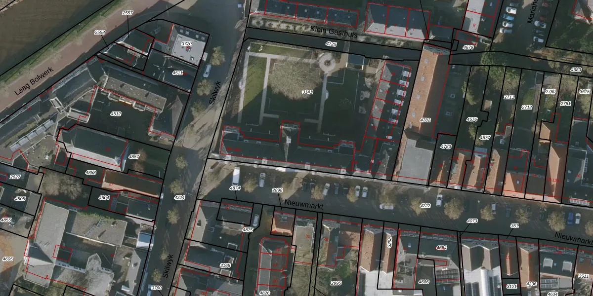 Het perceel waarop Nieuwmarkt 38-F staat heeft een oppervlakte van 2495 m². Dit is een zeer groot perceel. De perceeloppervlakte wordt geregistreerd door het Kadaster. Gedetailleerde informatie over de maten van dit perceel kunt u vinden in het rapport Kadastrale kaart met maatvoering van Nieuwmarkt 38-F.