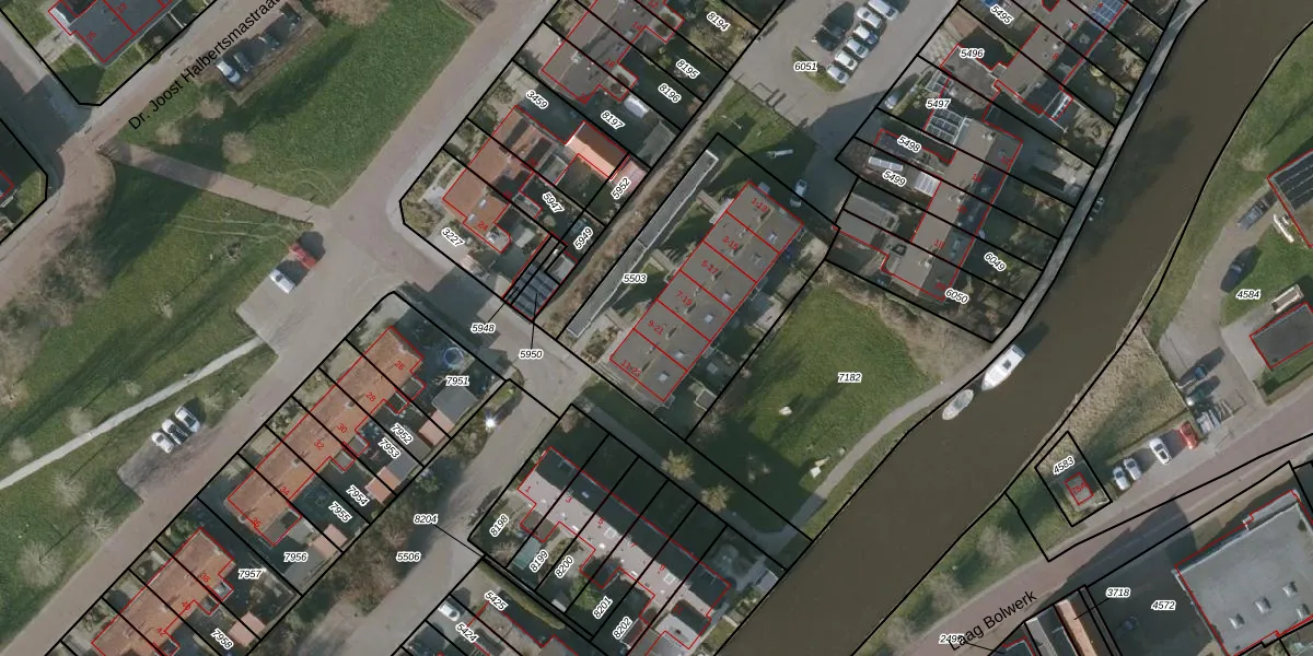 Het perceel waarop het adres ligt is BWD01-B-5503. De afkorting 'BWD01' staat voor kadastrale gemeente Bolsward. Het perceel is 991 m² groot. Dat is kleiner dan de gemiddelde perceeloppervlakte in Bolsward, dat op 1701,33 m² ligt. Het kleinste perceel in de kadastrale gemeente is 0 m² groot. De grootste perceeloppervlakte is 14,5 ha. Op het perceel zijn 12 adressen aanwezig. In de Basisregistratie Kadaster (BRK) werden de grenzen van het perceel geregistreerd op 24-03-2006.