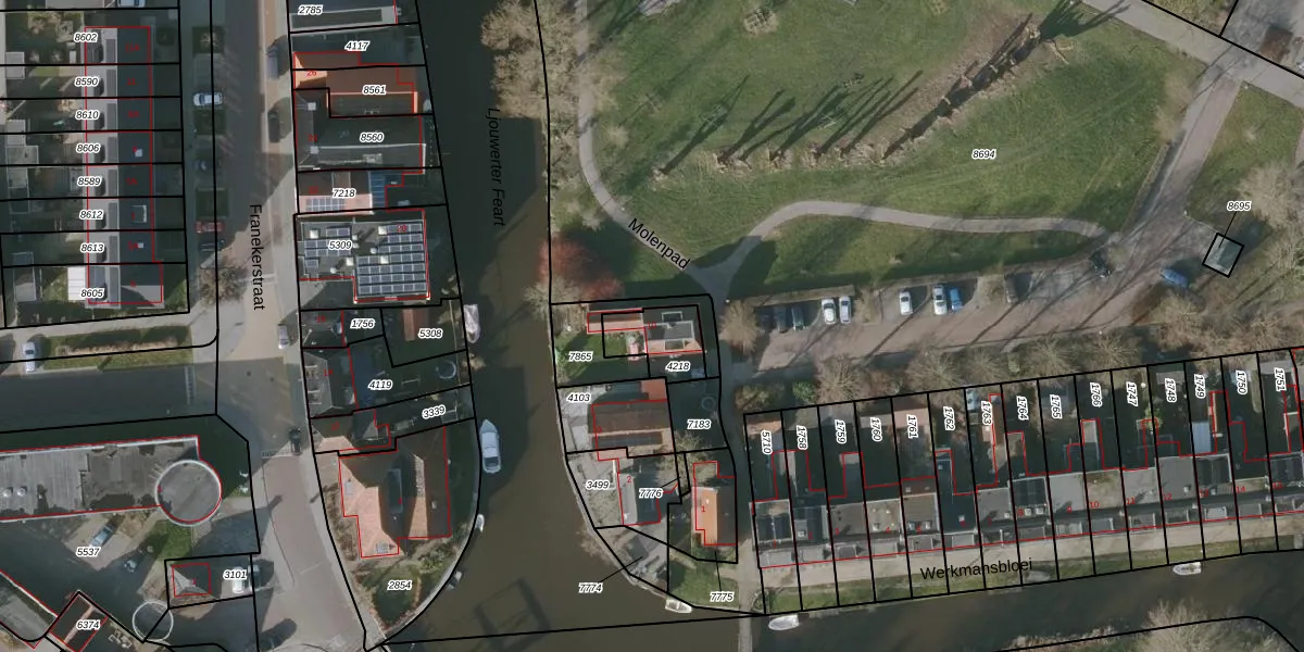 Het perceel waarop het adres ligt is BWD01-B-4218. De afkorting 'BWD01' staat voor kadastrale gemeente Bolsward. Het perceel is 135 m² groot. Dat is kleiner dan de gemiddelde perceeloppervlakte in Bolsward, dat op 1706,56 m² ligt. Het grootste perceel in de kadastrale gemeente is 14,5 ha. Het kleinste perceel heeft een oppervlakte van 0 m². Er zijn geen andere adressen aanwezig op het perceel. De huidige grenzen van het perceel zijn digitaal in de Basisregistratie Kadaster (BRK) geregistreerd op 17-08-2009.
