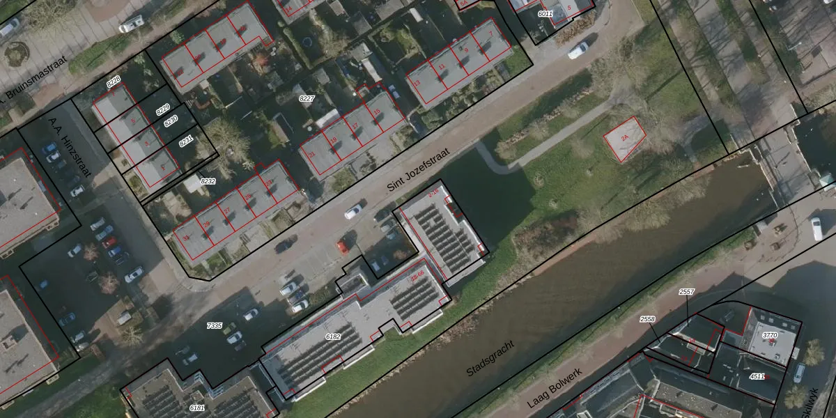 Sint Jozefstraat 10 is gelegen op kadastraal perceel BWD01B6182. Deze kadastrale aanduiding is uniek en wordt gebruikt door het Kadaster om eigendomsrechten en andere zakelijke rechten vast te leggen. Het perceel maakt onderdeel uit van de kadastrale gemeente Bolsward.