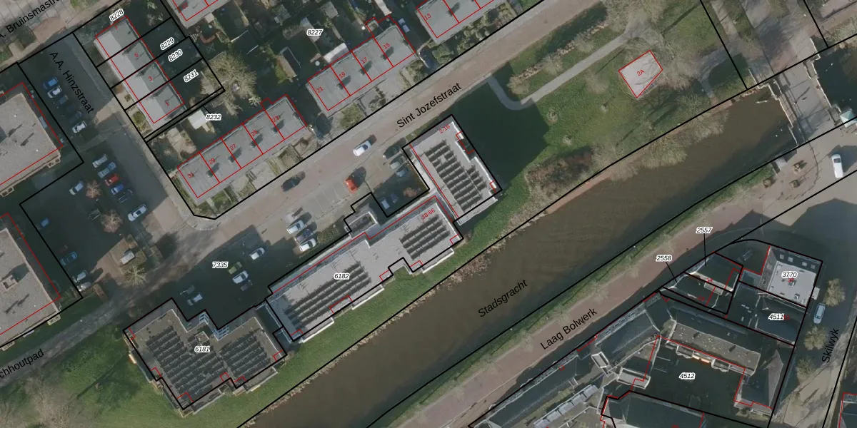 Sint Jozefstraat 18 is gelegen op kadastraal perceel BWD01B6182. Deze kadastrale aanduiding is uniek en wordt gebruikt door het Kadaster om eigendomsrechten en andere zakelijke rechten vast te leggen. Het perceel maakt onderdeel uit van de kadastrale gemeente Bolsward.