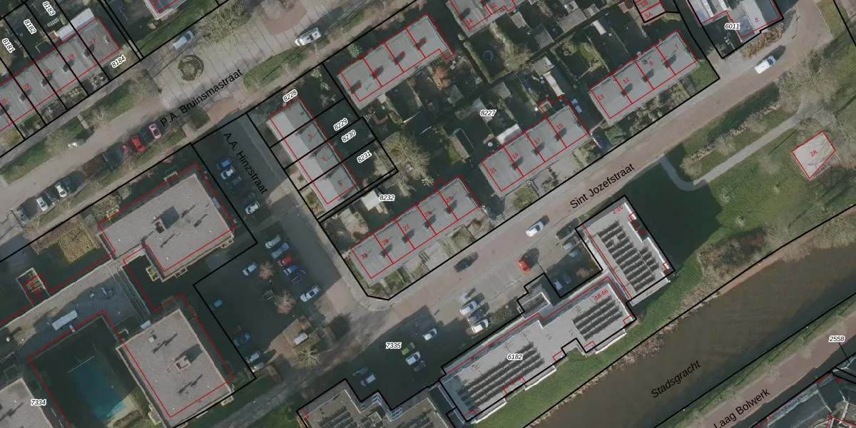 Sint Jozefstraat 25 is gelegen op kadastraal perceel BWD01B8227. Deze kadastrale aanduiding is uniek en wordt gebruikt door het Kadaster om eigendomsrechten en andere zakelijke rechten vast te leggen. Het perceel maakt onderdeel uit van de kadastrale gemeente Bolsward.