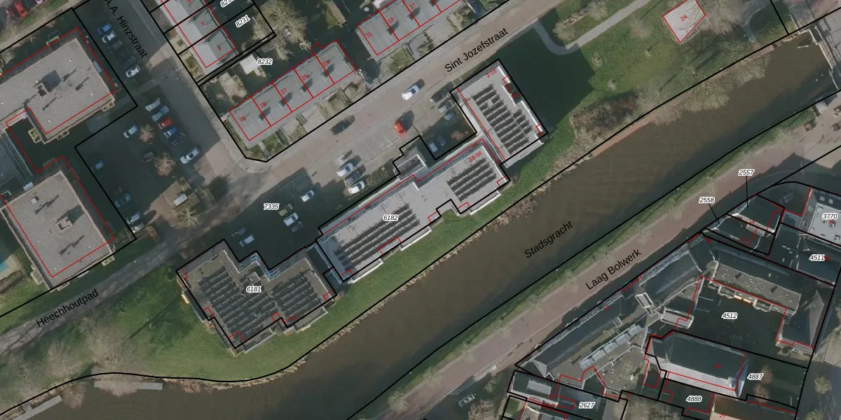 Sint Jozefstraat 34 is gelegen op kadastraal perceel BWD01B6182. Deze kadastrale aanduiding is uniek en wordt gebruikt door het Kadaster om eigendomsrechten en andere zakelijke rechten vast te leggen. Het perceel maakt onderdeel uit van de kadastrale gemeente Bolsward.