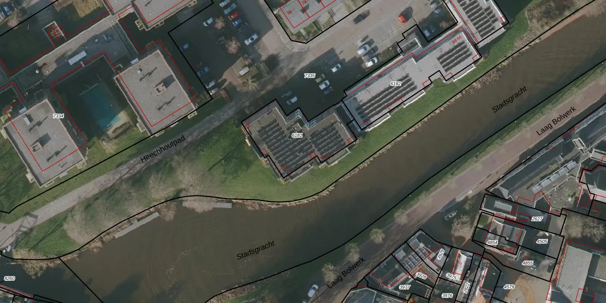 Het perceel waarop het adres ligt is BWD01-B-6181. De afkorting 'BWD01' staat voor kadastrale gemeente Bolsward. Het perceel is kleiner dan gemiddeld in Bolsward. Het perceel is 557 m² groot, terwijl het gemiddelde ligt op 1701,33 m². Het grootste perceel in de kadastrale gemeente is 14,5 ha. Het kleinste perceel heeft een oppervlakte van 0 m². Op het perceel liggen in totaal 14 adressen. De huidige grenzen van het perceel zijn digitaal in de Basisregistratie Kadaster (BRK) geregistreerd op 24-12-2004.