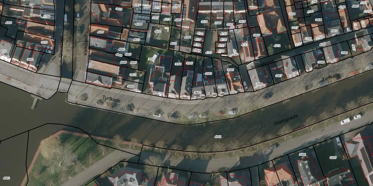 Turfkade 4 is gelegen op kadastraal perceel BWD01A3055. Deze kadastrale aanduiding is uniek en wordt gebruikt door het Kadaster om eigendomsrechten en andere zakelijke rechten vast te leggen. Het perceel maakt onderdeel uit van de kadastrale gemeente Bolsward.