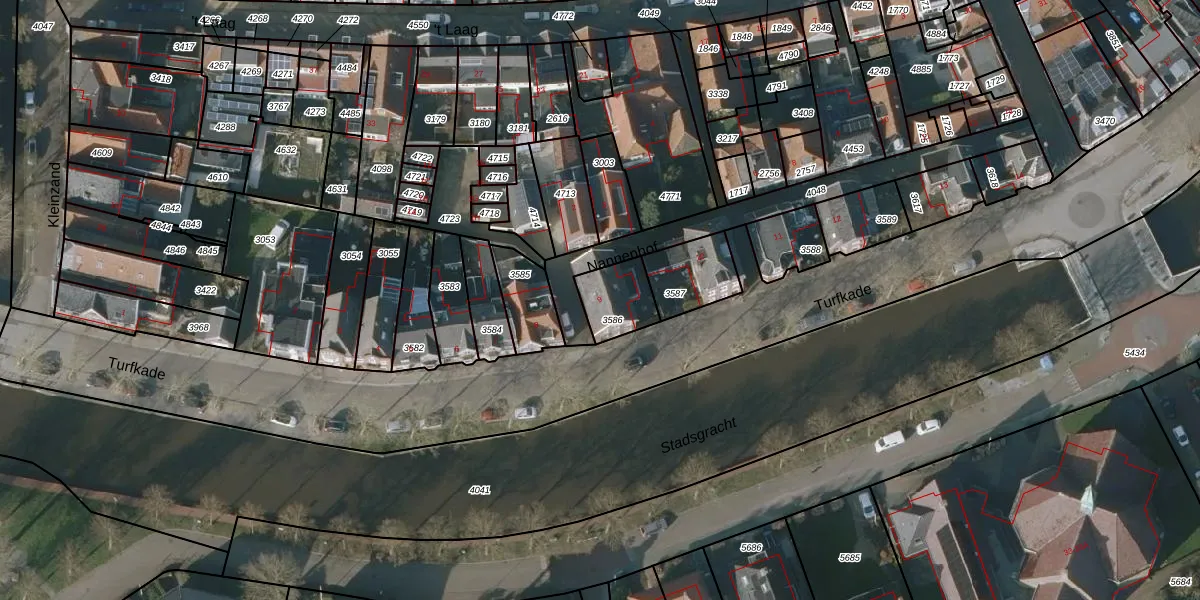 Turfkade 9 is gelegen op kadastraal perceel BWD01A3586. Deze kadastrale aanduiding is uniek en wordt gebruikt door het Kadaster om eigendomsrechten en andere zakelijke rechten vast te leggen. Het perceel maakt onderdeel uit van de kadastrale gemeente Bolsward.