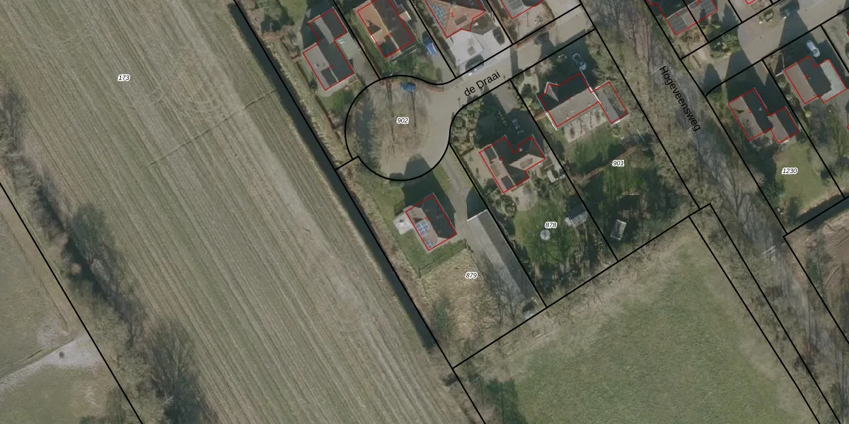 Het perceel waarop de Draai 5 staat heeft een oppervlakte van 1235 m². Dit is een zeer groot perceel. De perceeloppervlakte wordt geregistreerd door het Kadaster. Gedetailleerde informatie over de maten van dit perceel kunt u vinden in het rapport Kadastrale kaart met maatvoering van de Draai 5.