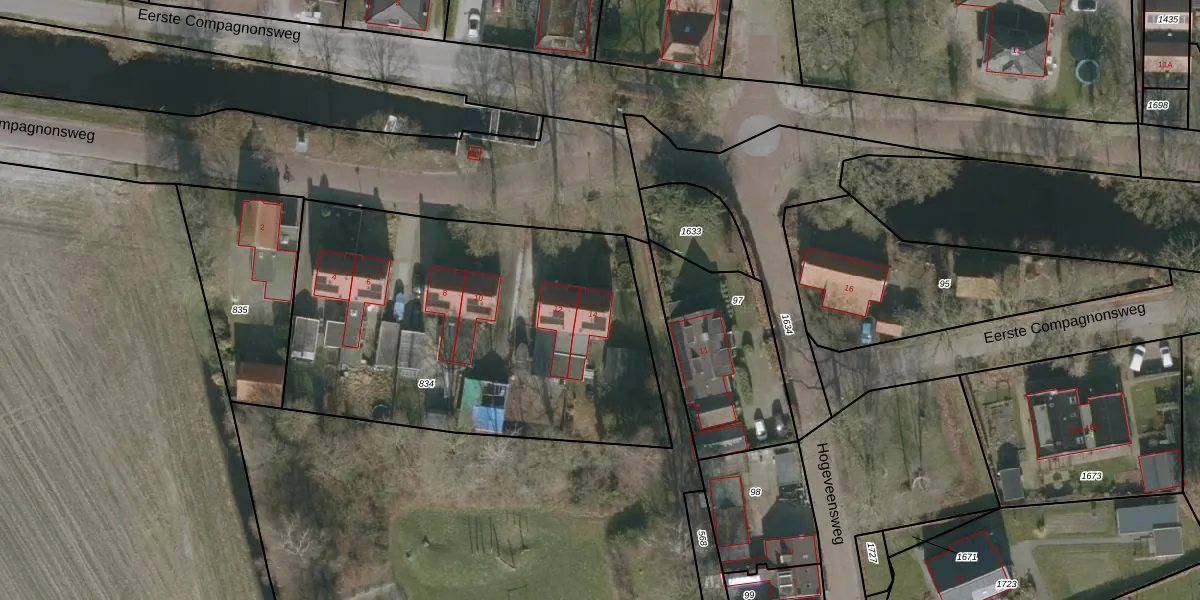 Het perceel waarop Eerste Compagnonsweg 14 staat heeft een oppervlakte van 2091 m². Dit is een zeer groot perceel. De perceeloppervlakte wordt geregistreerd door het Kadaster. Gedetailleerde informatie over de maten van dit perceel kunt u vinden in het rapport Kadastrale kaart met maatvoering van Eerste Compagnonsweg 14.