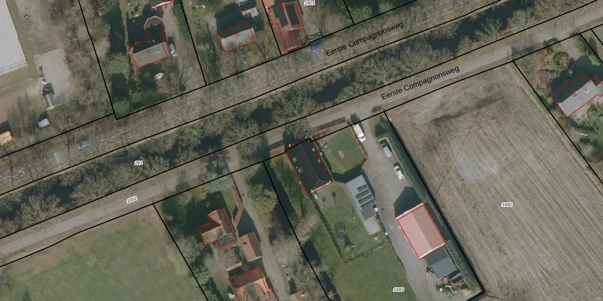 Het perceel waarop Eerste Compagnonsweg 64 staat heeft een oppervlakte van 3225 m². Dit is een zeer groot perceel. De perceeloppervlakte wordt geregistreerd door het Kadaster. Gedetailleerde informatie over de maten van dit perceel kunt u vinden in het rapport Kadastrale kaart met maatvoering van Eerste Compagnonsweg 64.