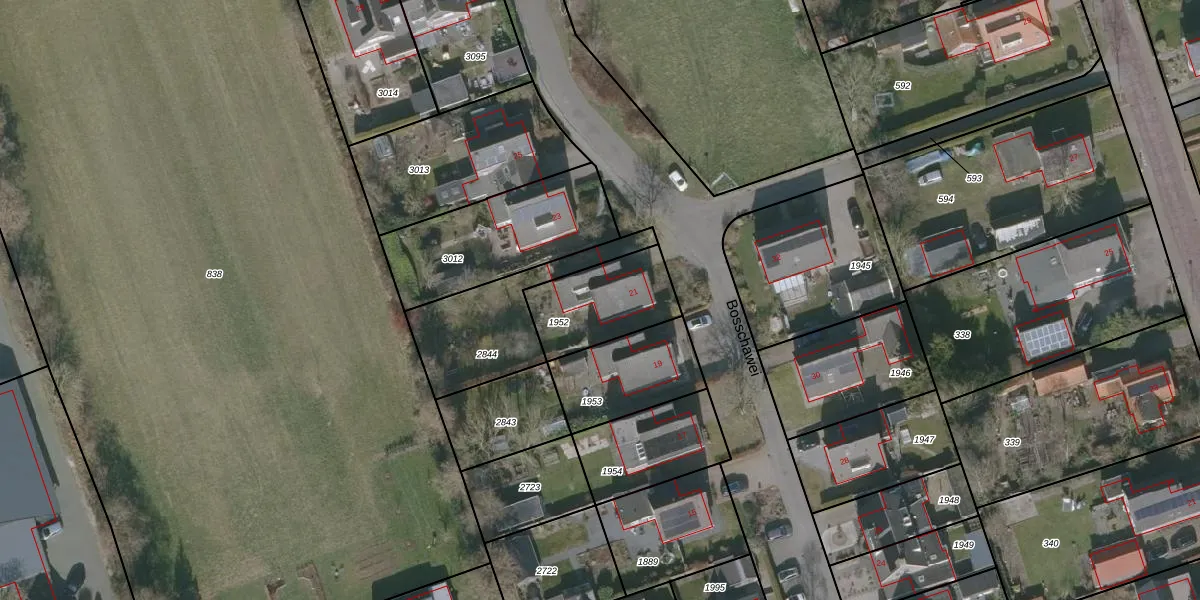 Bosschawei 21 is gelegen op kadastraal perceel BBG03F1952. Deze kadastrale aanduiding is uniek en wordt gebruikt door het Kadaster om eigendomsrechten en andere zakelijke rechten vast te leggen. Het perceel maakt onderdeel uit van de kadastrale gemeente Boornbergum.