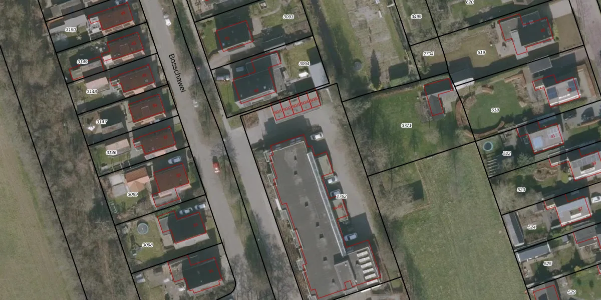 Bosschawei 46 is gelegen op kadastraal perceel BBG03F2762. Deze kadastrale aanduiding is uniek en wordt gebruikt door het Kadaster om eigendomsrechten en andere zakelijke rechten vast te leggen. Het perceel maakt onderdeel uit van de kadastrale gemeente Boornbergum.