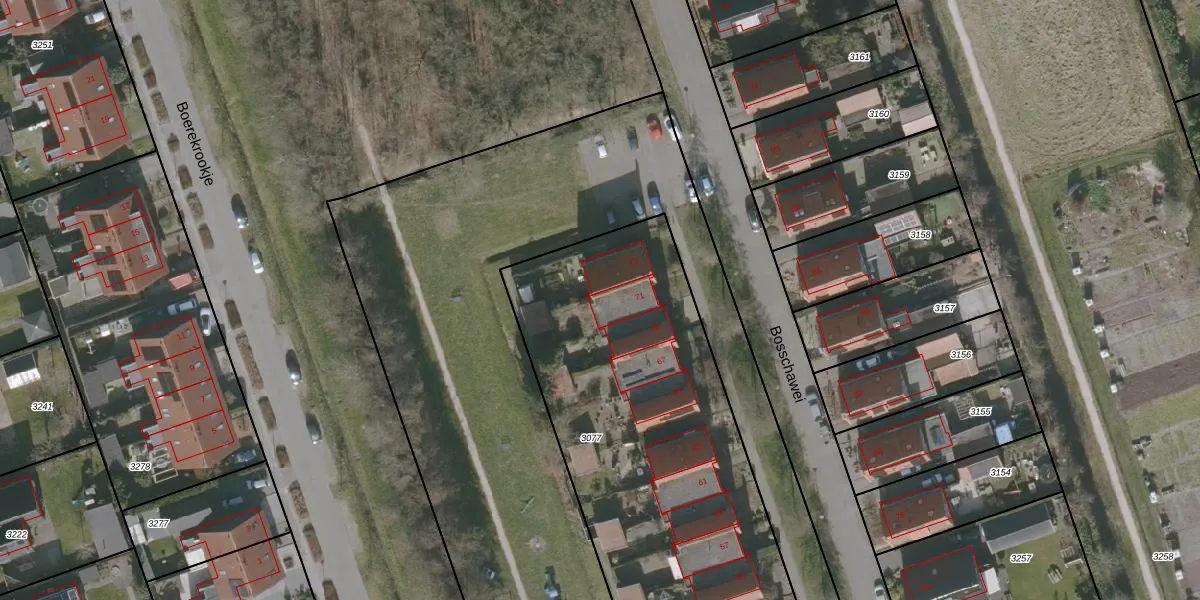 Bosschawei 71 is gelegen op kadastraal perceel BBG03F3077. Deze kadastrale aanduiding is uniek en wordt gebruikt door het Kadaster om eigendomsrechten en andere zakelijke rechten vast te leggen. Het perceel maakt onderdeel uit van de kadastrale gemeente Boornbergum.