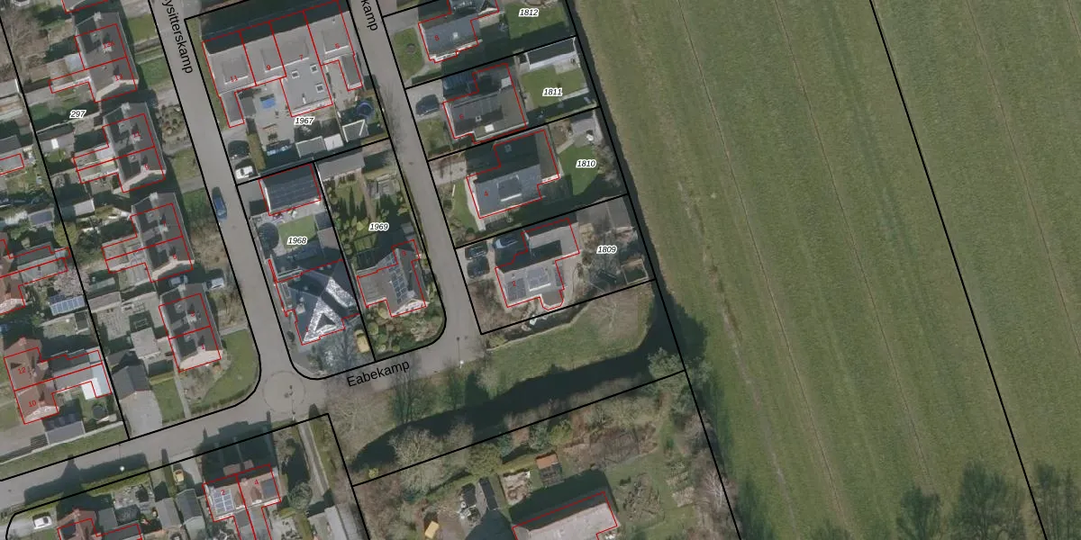 Het perceel waarop Eabekamp 2 staat heeft een oppervlakte van 561 m². Dit is een groot perceel. De perceeloppervlakte wordt geregistreerd door het Kadaster. Gedetailleerde informatie over de maten van dit perceel kunt u vinden in het rapport Kadastrale kaart met maatvoering van Eabekamp 2.