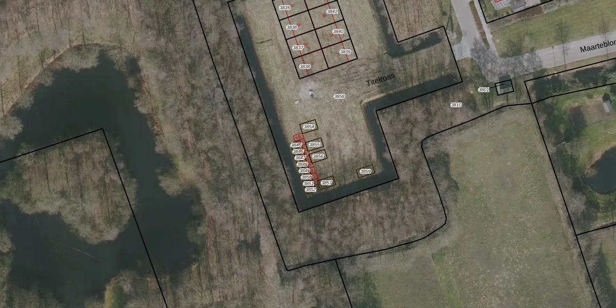 Het perceel waarop Titelroas 1-5 staat heeft een oppervlakte van 2775 m². Dit is een zeer groot perceel. De perceeloppervlakte wordt geregistreerd door het Kadaster. Gedetailleerde informatie over de maten van dit perceel kunt u vinden in het rapport Kadastrale kaart met maatvoering van Titelroas 1-5.