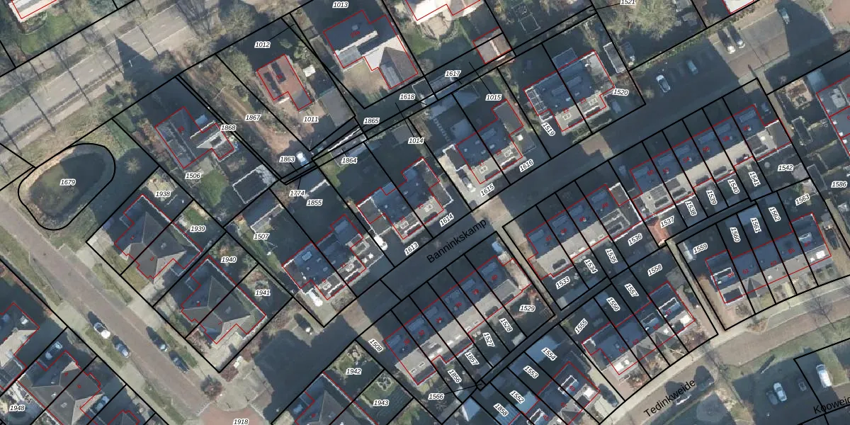 Het perceel waarop Banninkskamp 15 staat heeft een oppervlakte van 314 m². Dit is een groot perceel. De perceeloppervlakte wordt geregistreerd door het Kadaster. Gedetailleerde informatie over de maten van dit perceel kunt u vinden in het rapport Kadastrale kaart met maatvoering van Banninkskamp 15.