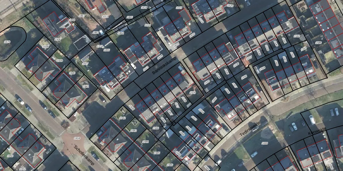 Het perceel waarop Banninkskamp 38 staat heeft een oppervlakte van 134 m². Dit is een middelgroot perceel. De perceeloppervlakte wordt geregistreerd door het Kadaster. Gedetailleerde informatie over de maten van dit perceel kunt u vinden in het rapport Kadastrale kaart met maatvoering van Banninkskamp 38.