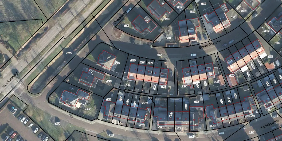 Gebruik de zoekbalk of klik op een perceel voor informatie over de adressen binnen dit perceel.