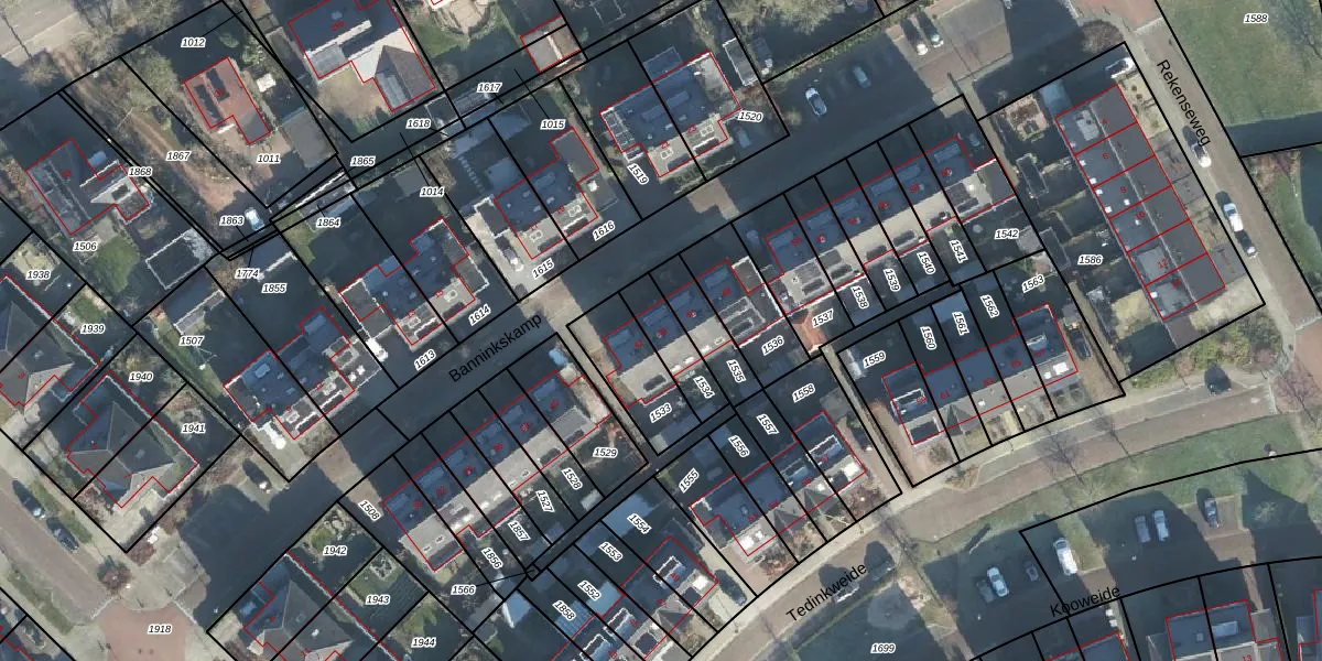 Het perceel waarop Banninkskamp 44 staat heeft een oppervlakte van 127 m². Dit is een middelgroot perceel. De perceeloppervlakte wordt geregistreerd door het Kadaster. Gedetailleerde informatie over de maten van dit perceel kunt u vinden in het rapport Kadastrale kaart met maatvoering van Banninkskamp 44.