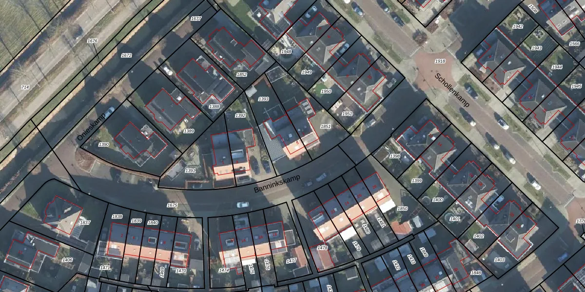 Het perceel waarop Banninkskamp 5 staat heeft een oppervlakte van 360 m². Dit is een groot perceel. De perceeloppervlakte wordt geregistreerd door het Kadaster. Gedetailleerde informatie over de maten van dit perceel kunt u vinden in het rapport Kadastrale kaart met maatvoering van Banninkskamp 5.