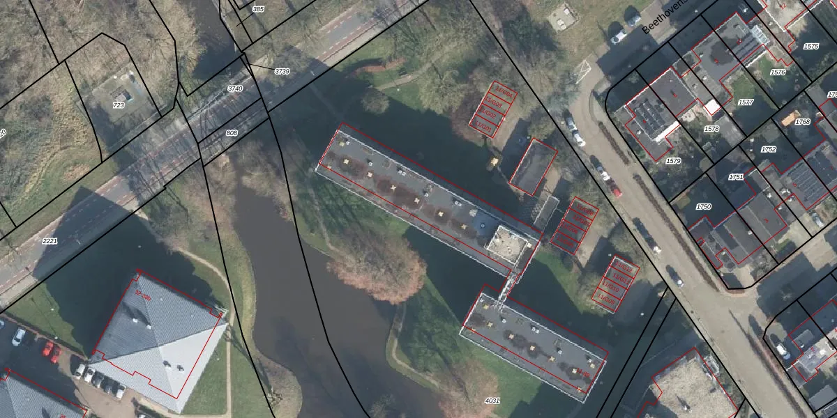 Het perceel waarop Beethovenstraat 53 staat heeft een oppervlakte van 7400 m². Dit is een zeer groot perceel. De perceeloppervlakte wordt geregistreerd door het Kadaster. Gedetailleerde informatie over de maten van dit perceel kunt u vinden in het rapport Kadastrale kaart met maatvoering van Beethovenstraat 53.