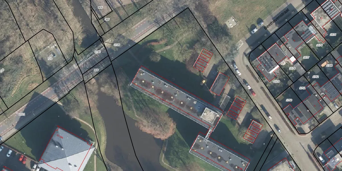 Het perceel waarop Beethovenstraat 55 staat heeft een oppervlakte van 7400 m². Dit is een zeer groot perceel. De perceeloppervlakte wordt geregistreerd door het Kadaster. Gedetailleerde informatie over de maten van dit perceel kunt u vinden in het rapport Kadastrale kaart met maatvoering van Beethovenstraat 55.