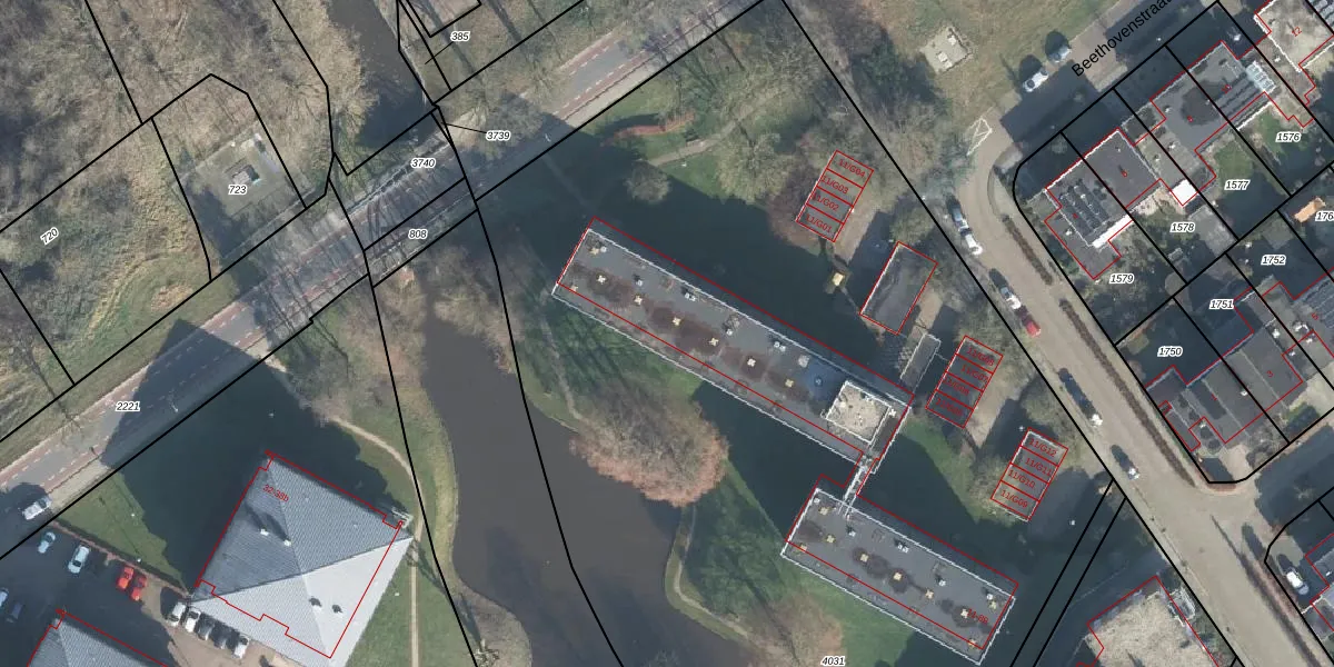 Het perceel waarop Beethovenstraat 65 staat heeft een oppervlakte van 7400 m². Dit is een zeer groot perceel. De perceeloppervlakte wordt geregistreerd door het Kadaster. Gedetailleerde informatie over de maten van dit perceel kunt u vinden in het rapport Kadastrale kaart met maatvoering van Beethovenstraat 65.