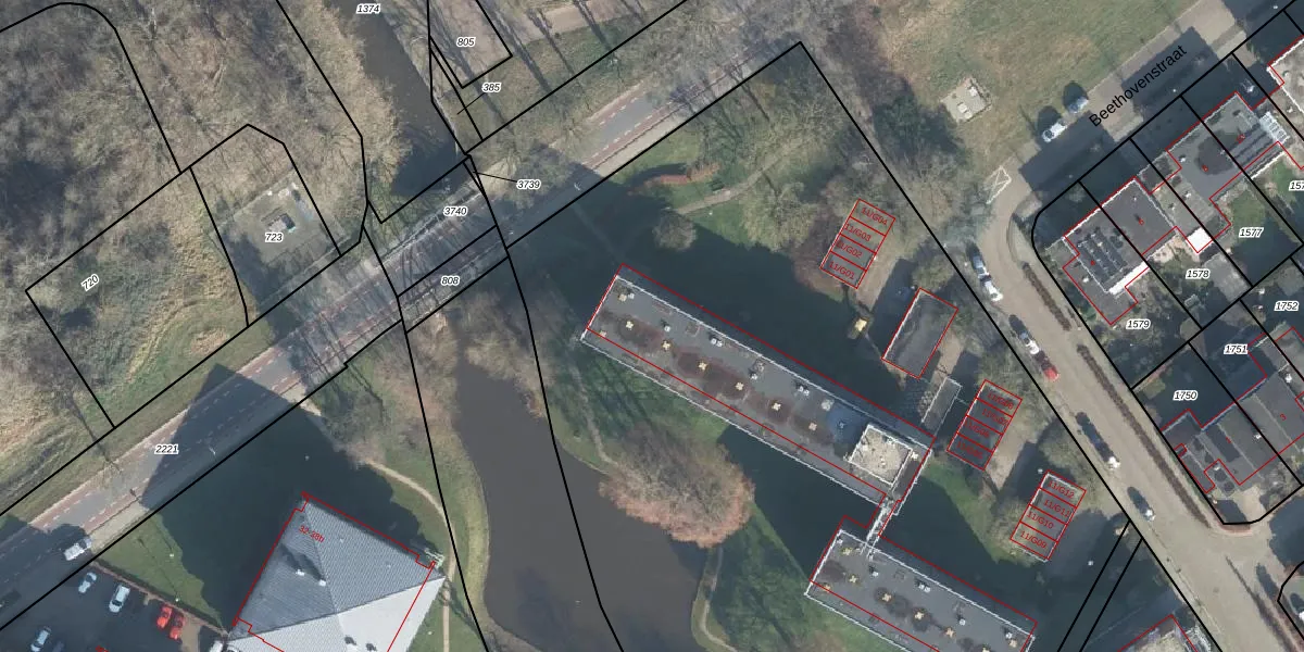 Het perceel waarop Beethovenstraat 81 staat heeft een oppervlakte van 7400 m². Dit is een zeer groot perceel. De perceeloppervlakte wordt geregistreerd door het Kadaster. Gedetailleerde informatie over de maten van dit perceel kunt u vinden in het rapport Kadastrale kaart met maatvoering van Beethovenstraat 81.