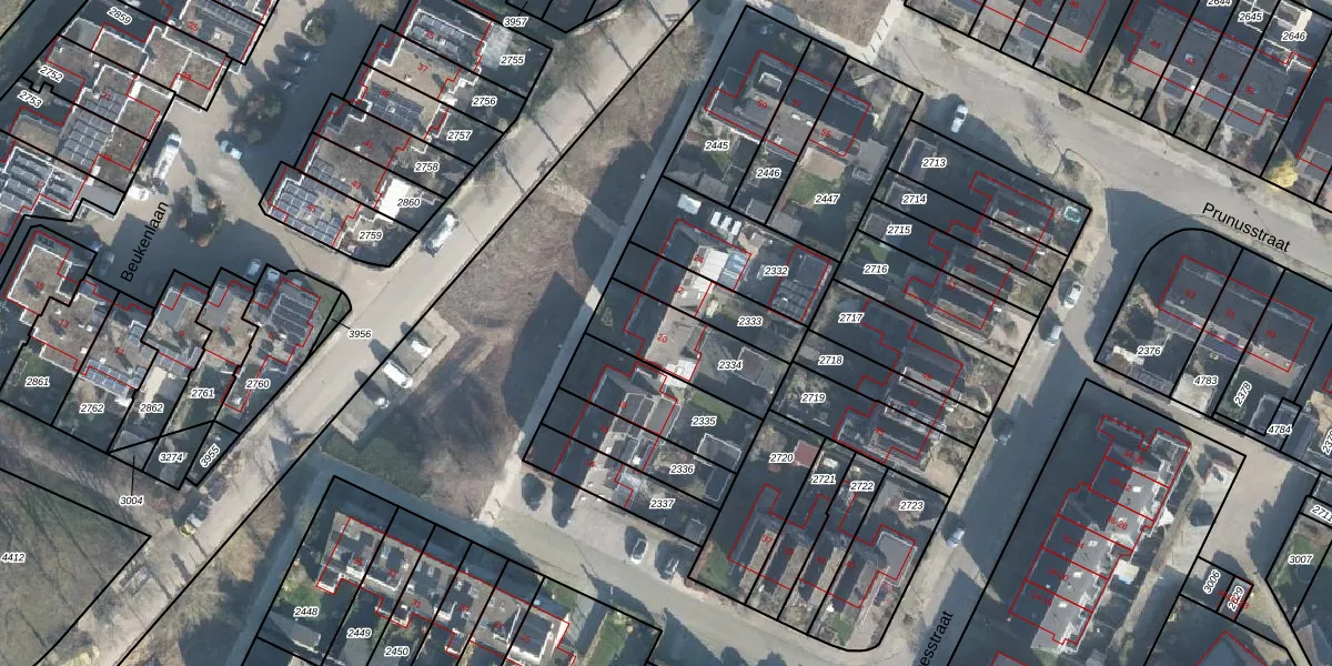 Gebruik de zoekbalk of klik op een perceel voor informatie over de adressen binnen dit perceel.