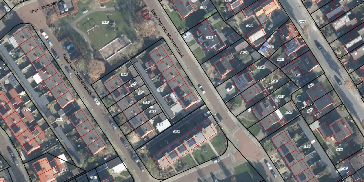 Bisschop van Munsterstraat 9 is gelegen op kadastraal perceel BCL00D3837. Deze kadastrale aanduiding is uniek en wordt gebruikt door het Kadaster om eigendomsrechten en andere zakelijke rechten vast te leggen. Het perceel maakt onderdeel uit van de kadastrale gemeente Borculo.
