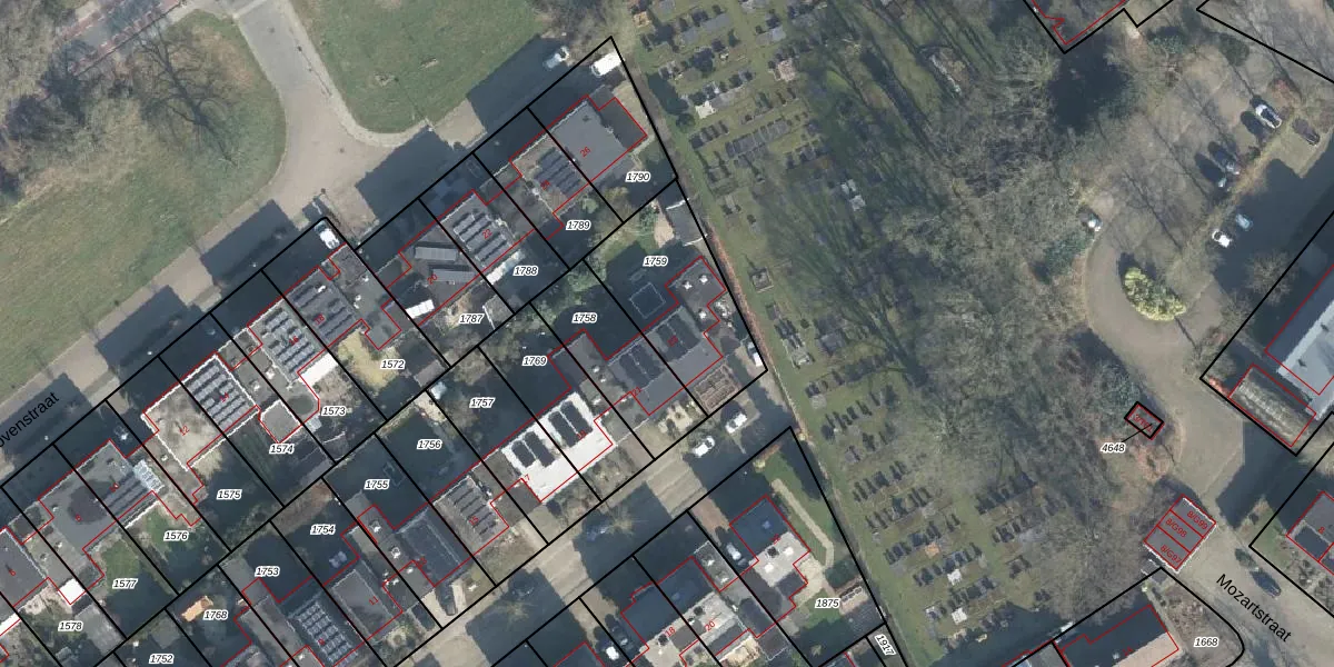 Gebruik de zoekbalk of klik op een perceel voor informatie over de adressen binnen dit perceel.