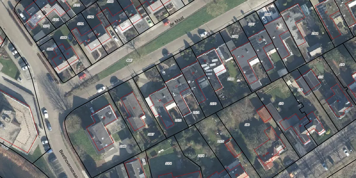 Het perceel waarop de Maat 27 staat heeft een oppervlakte van 443 m². Dit is een groot perceel. De perceeloppervlakte wordt geregistreerd door het Kadaster. Gedetailleerde informatie over de maten van dit perceel kunt u vinden in het rapport Kadastrale kaart met maatvoering van de Maat 27.