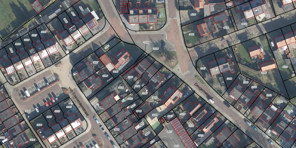 Gebruik de zoekbalk of klik op een perceel voor informatie over de adressen binnen dit perceel.