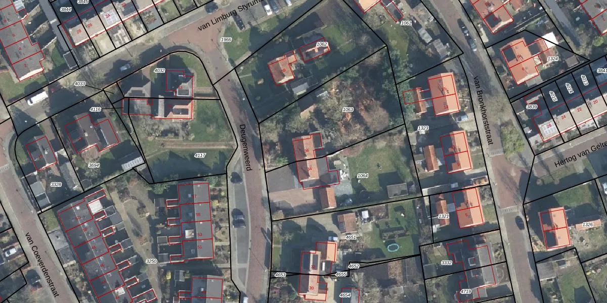Deugenweerd 36 is gelegen op kadastraal perceel BCL00D1063. Deze kadastrale aanduiding is uniek en wordt gebruikt door het Kadaster om eigendomsrechten en andere zakelijke rechten vast te leggen. Het perceel maakt onderdeel uit van de kadastrale gemeente Borculo.