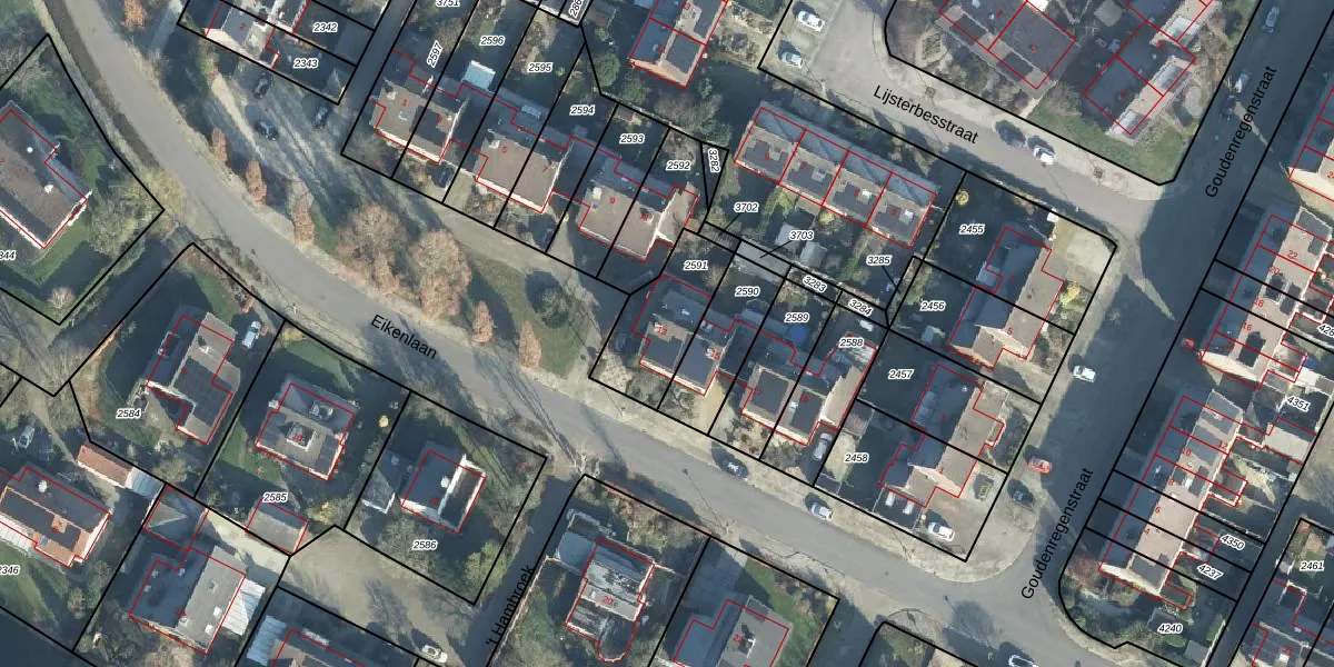 Gebruik de zoekbalk of klik op een perceel voor informatie over de adressen binnen dit perceel.
