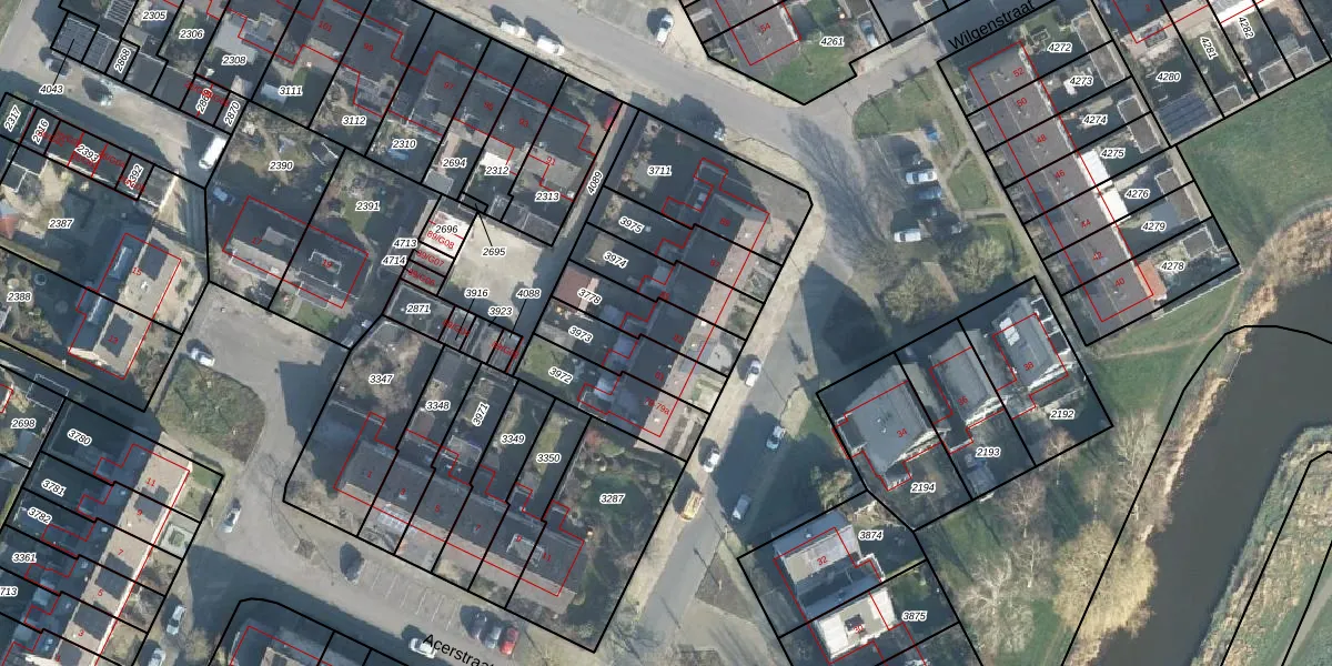 Gebruik de zoekbalk of klik op een perceel voor informatie over de adressen binnen dit perceel.