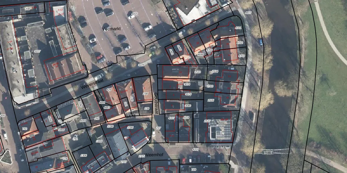 Gebruik de zoekbalk of klik op een perceel voor informatie over de adressen binnen dit perceel.