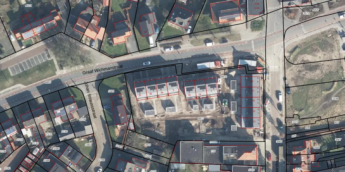 Het perceel waarop Graaf Wichmanstraat 3 staat heeft een oppervlakte van 3143 m². Dit is een zeer groot perceel. De perceeloppervlakte wordt geregistreerd door het Kadaster. Gedetailleerde informatie over de maten van dit perceel kunt u vinden in het rapport Kadastrale kaart met maatvoering van Graaf Wichmanstraat 3.